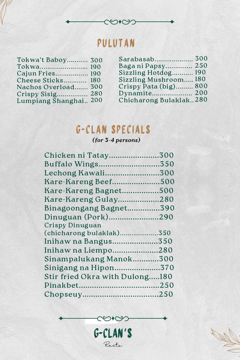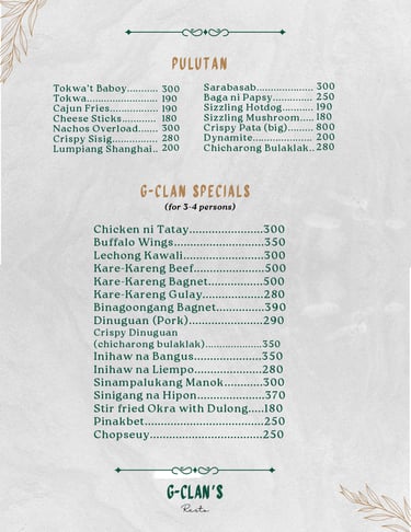 G-Clan's Resto © 2025. All rights reserved. Powered By AI TDPH 🚀